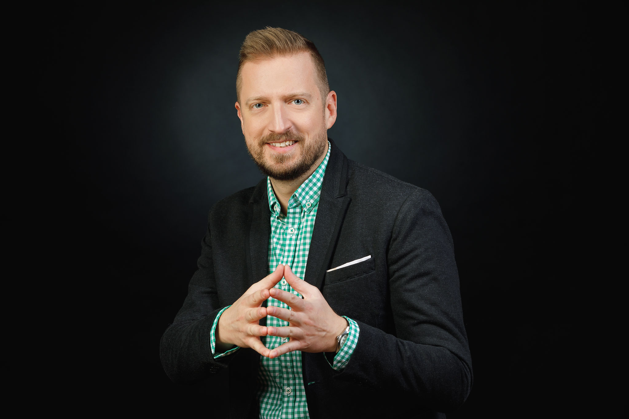 Every corporate portrait session starts with a “posing” briefing on how to position head, arms, body, how to shape an appropriate smile, all according to your physical frame.